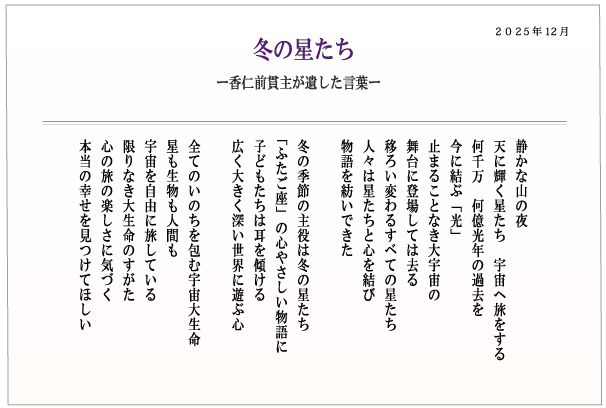 2025年12月 『冬の星たち』
